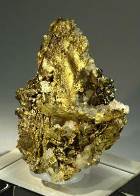 WOW!!! Gorgeous crystallized gold leaves from Verespatak on quartz matrix! Quartz and marcasite crystals are so typical side crystals at this classic locality and make a beautiful contrast. Definitely one of the very best gold specimens from this locality i have ever seen!