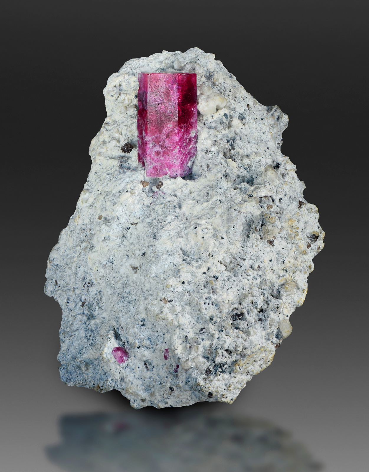 A sharp red hexagon sitting on rhyolite matrix. Aesthetic pieces from this locality are rare on the market today, and this is a very fine and inexpensive sample!