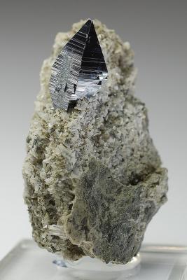 Wow! This is a pointed and razor sharp anatase perched on adularia matrix. The crystal is 21 mm tall. From old finds. Great condition and aesthetics!
