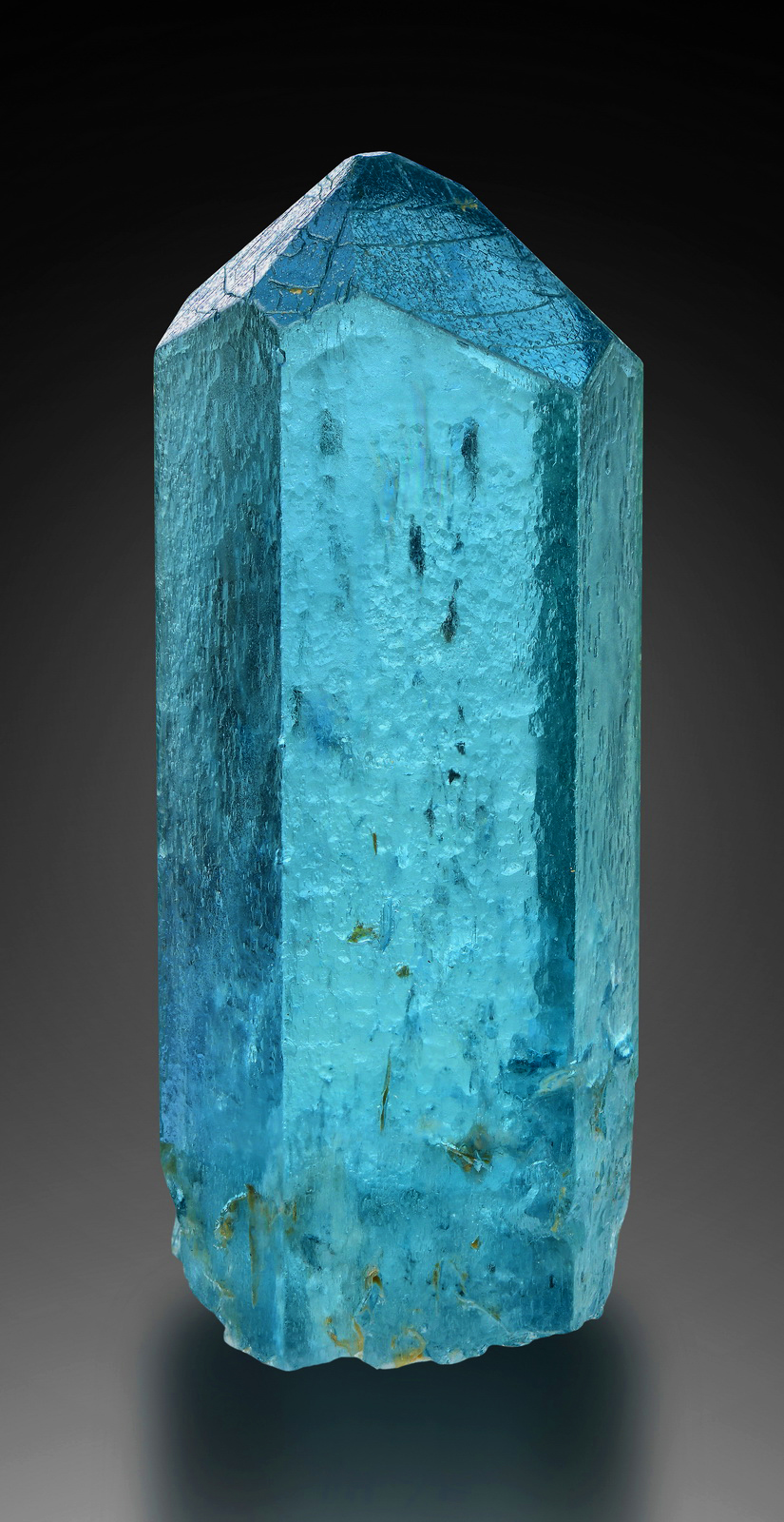 This is a killer aquamarine crystal from an African source! The colour is shockingly strong, especially in the sunlight. The termination bevels are exceptionally fine, and the surface structures are special and unique. What a gorgeous gemstone crystal in perfect condition!