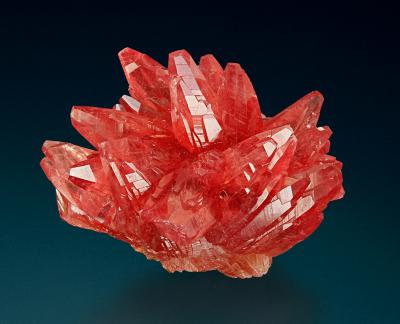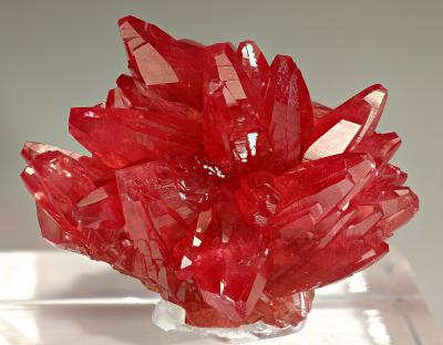 This is a very fine cluster of more than a dozen rhodochrosite crystals to 19 mm tall. The colour is a very pleasing raspberry red, the luster is as good as it could be, and also the overall appearance is just gorgeous! Minor cleaves are present, but these are small in context. The main crystals have distinct flat terminations and are in perfect condition.