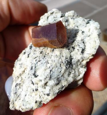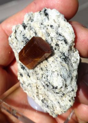 This specimen features a texbook bastnaesite crystal on granite matrix. It is sharp and pristine, colourful and gemmy. Indeed amazing quality and composition!