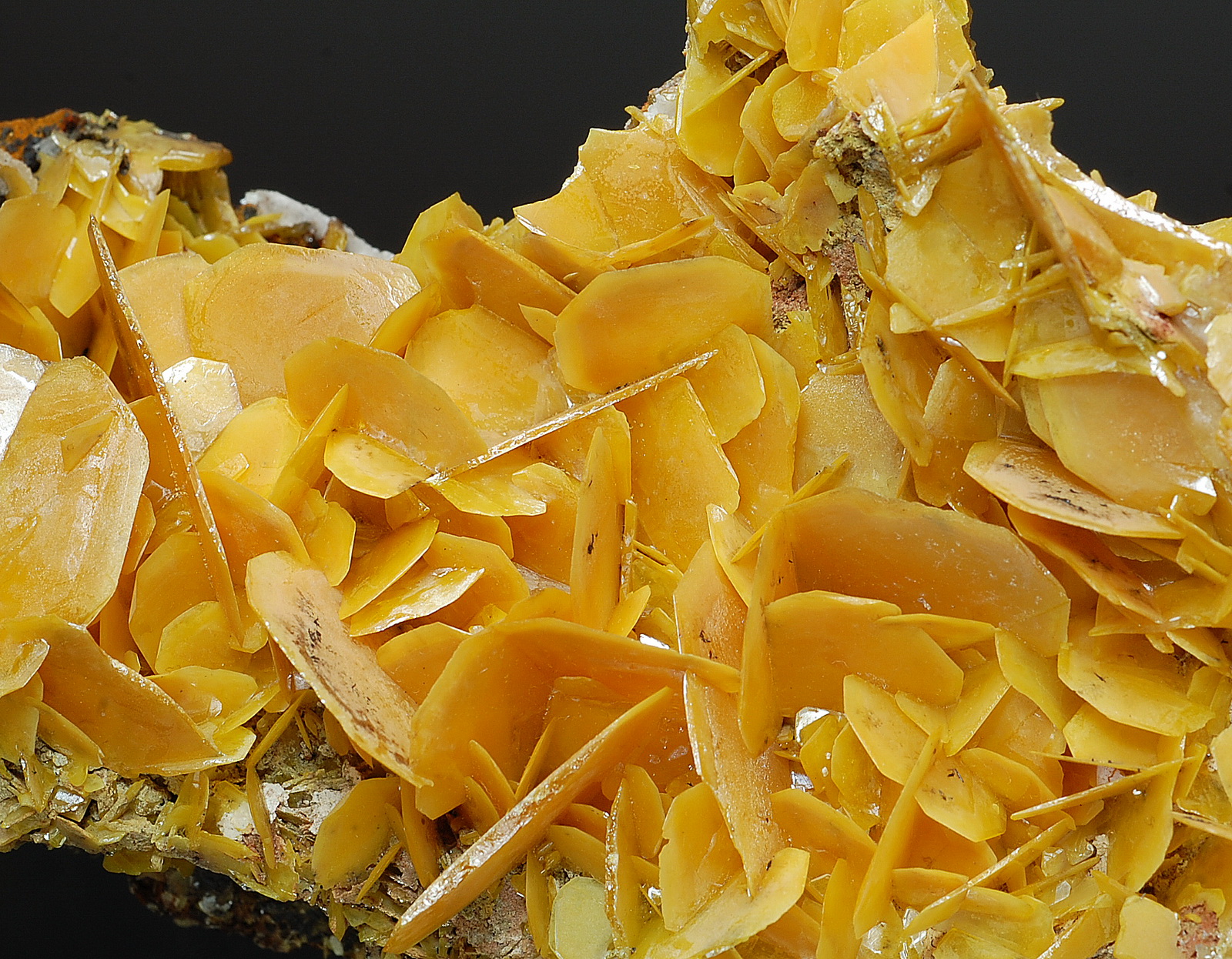 Great group of yellow wulfenite blades. Comes from an old find in the 1980s.