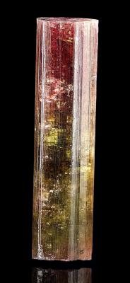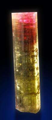 This is an excellent bicolour tourmaline from Nigeria! The crystal has indeed open colours, but when just slightly backlight a sharp hot pink core appears and and the crystal just glows! A few tiny rubs on the edges were resored in a professional lab. What a fantastic crystal from a remote african source!