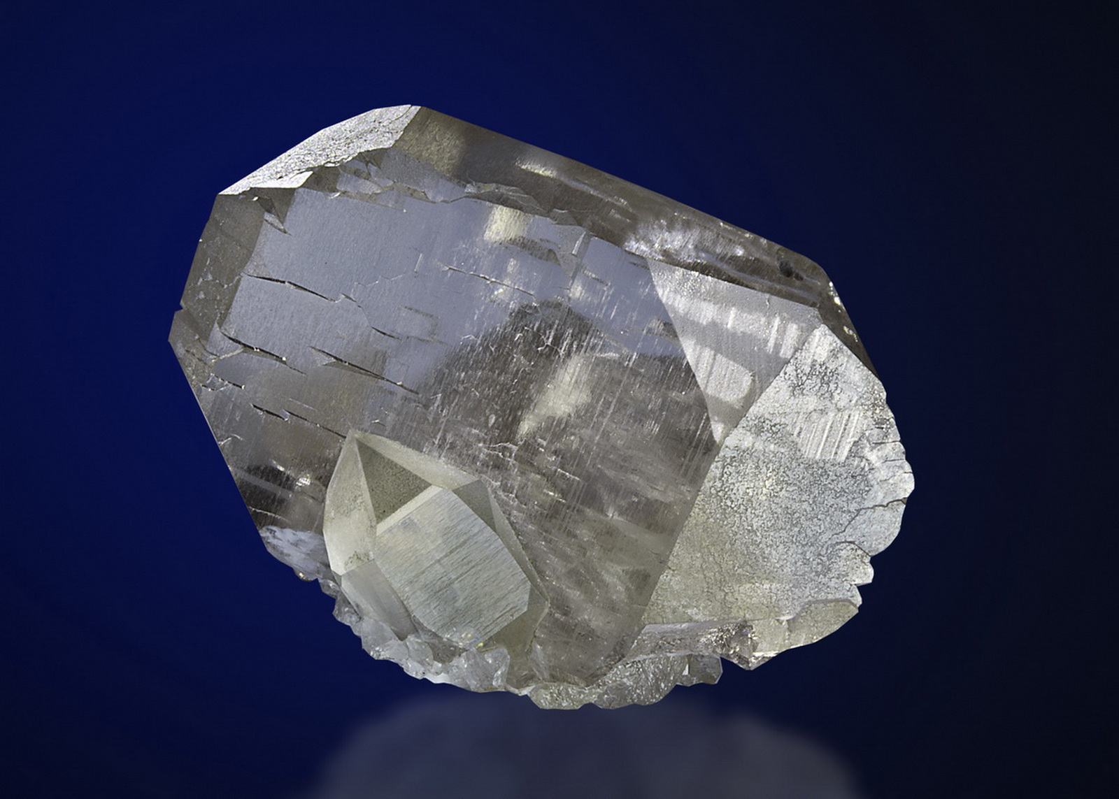 This is a very large closed gwindel resting on some smaller regular quartz crystals. The bottom side is fully crystallized. Great condition and shape!