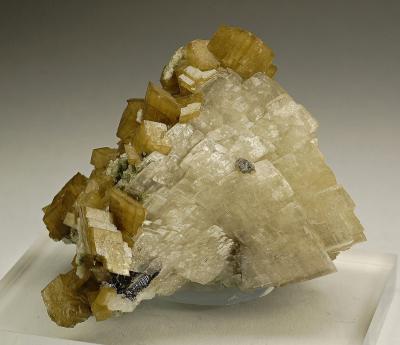 Sideridt crystals to 15 mm across scattered on a big dolomite crystal. A small sagenite rutile aggregate completes the wonderful combination.
