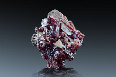 A beautiful cinnabar crystal sizzing on dolomite and quartz matrix. The crystal measures 1.7 cm across. Ex Oliver Konczer collection.
