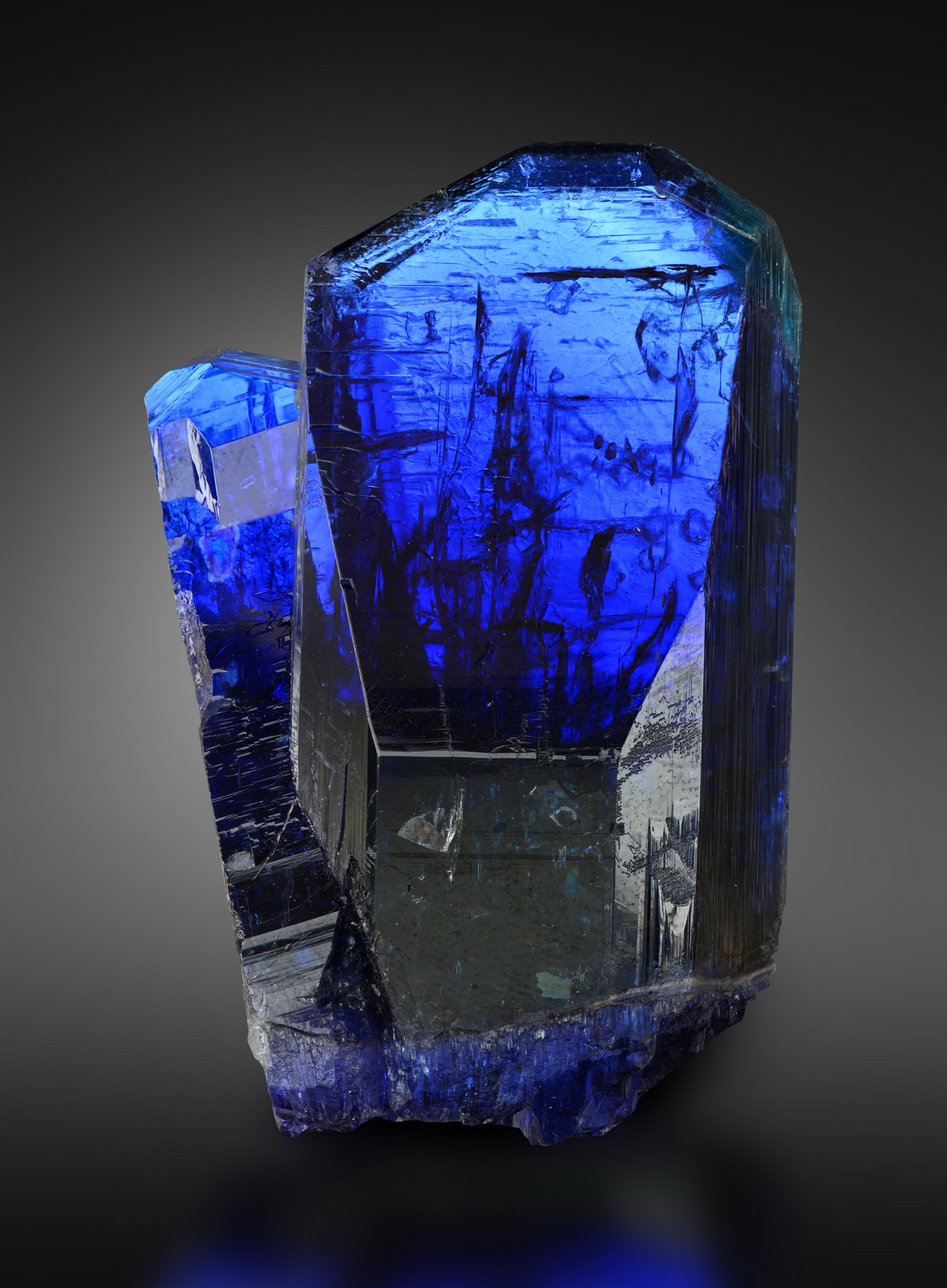WOW! This is truly a fantastic pair of tanzanite crystals! Two crystals in cluster are exceedingly rare, and these two crystals have truly fantastic quality also! One corner of the crystal was replaced by epoxy filling, otherwise the specimen is in really great condition. The colour change is very well visible, and the sharpness and clarity are just breath-taking!