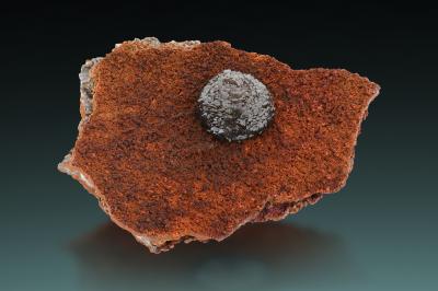A wonderful 15mm sphere of black adamite sitting perfectly centered on a limonite covered, gossan matrix. The crystal reflects the light like a disco-ball, the luster is just amazing. The specimen is in pristine condition, there is no damage.