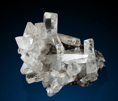 A sculptural assemble of sharp zepter crystals with beautiful concentration of purple color along the end-points. The faces are very glossy and show amazing "fenster" growth structures. No significant damages to report. Ex Heinrich Prager collection.