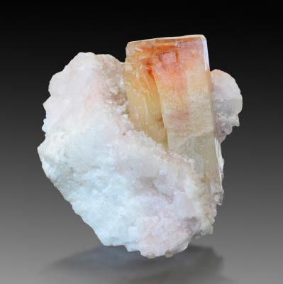 This specimen features a large columnar strontianite predominantly sitting on magnesite matrix. Towards the termination the colour gets more intense and results in a pleasing and highly desired reddish brown hue. The prism faces are sharp and lustrous, the termination faces are stepped and bevelled. Oberdorf an der Laming is the only locality in the world that has produced strontianites of that size and quality. This is a remarkably fine miniature, very hard to find in the market today. Ex R. Metzger collection, his label is coming with the piece. A note on the back side says that he sold it to Dr. Thaller in 1961 for 80 Shillings.
