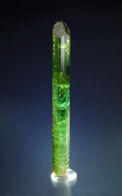 This is an elongated tourmaline crystals from the famous "rocket pocket". It shows reat clarity in the top section! Repaired once right in the middle, but the repair is close fit and barely visible.