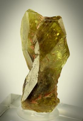 This is a group of two twinned chrysoberyl crystals featuring sharp edges combined with great colour and clarity. No damage on the terminations of both crystals. The piece comes from an old colelction, it was probably found in the 1970s.
