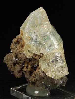 Fantastic etched topaz crystal on lepidolite matrix! The crystal has a slight blue hue and incredibly fine etching patterns on all sides. It has no damage and truly dispays great all the way around! Comes with an old collection label, obtained by the collector in 1976.