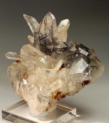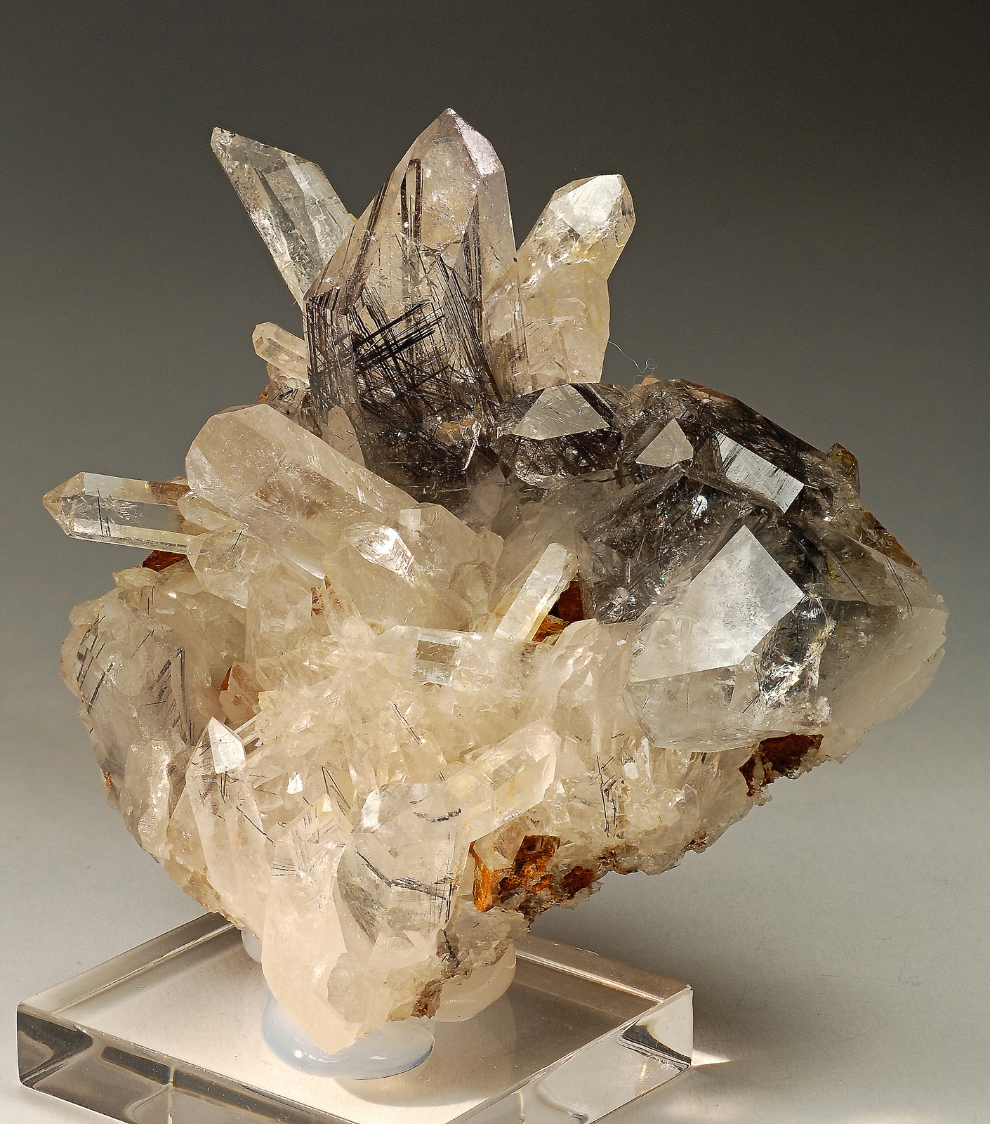 Stunning rutile inclusions in clear quartz crystals on matrix! The crystal tips are all pristine, no damage!