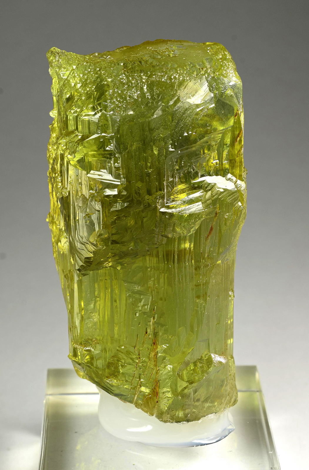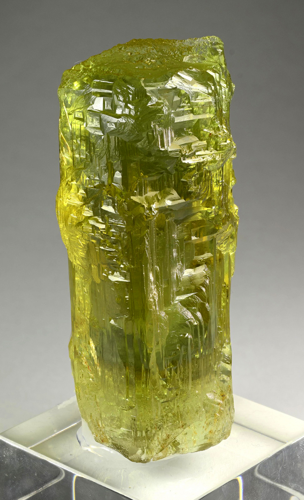 WOW! What a gorgeous 245g heliodor crystal! The etching patterns are exceptionally fine all around, and the clarity is fabulous!
