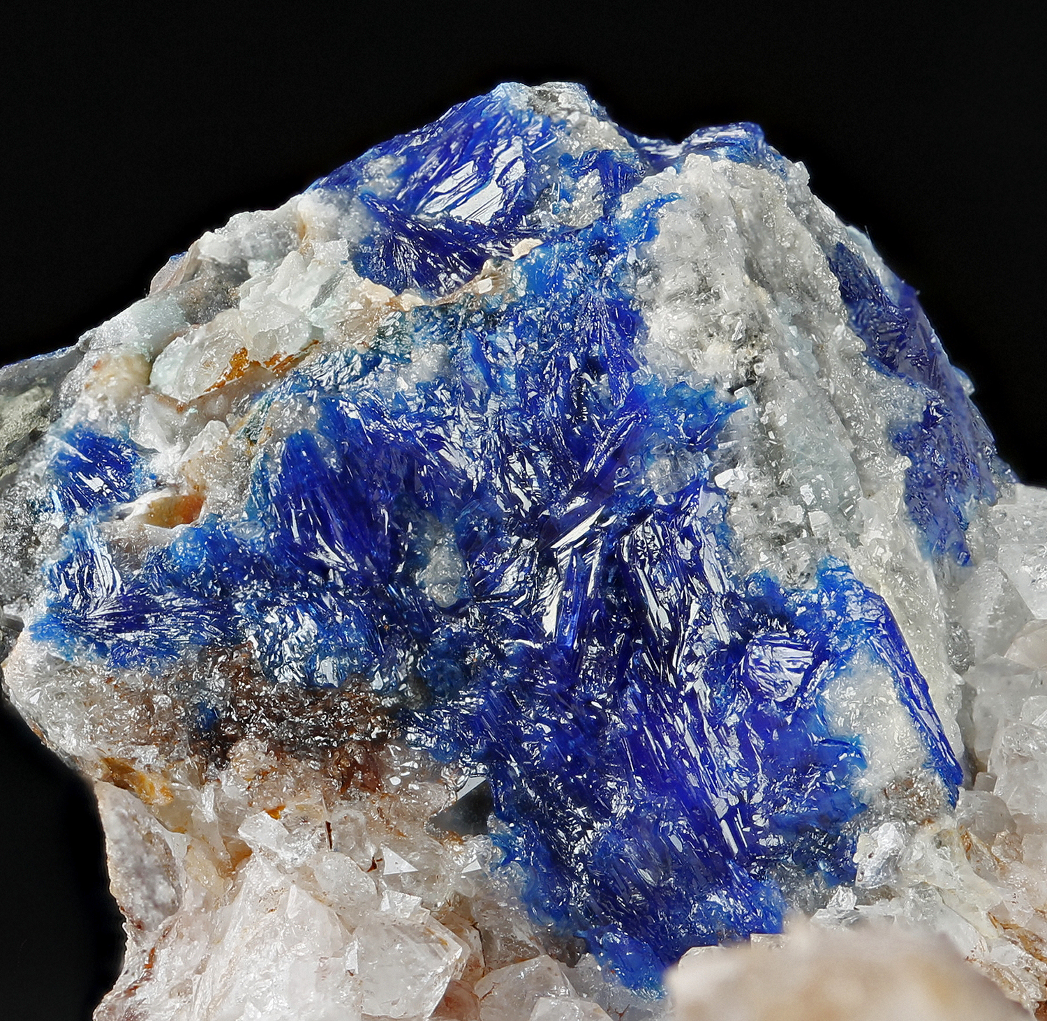 Intense blue linarite crystals on galena, very typical combination of this locality.