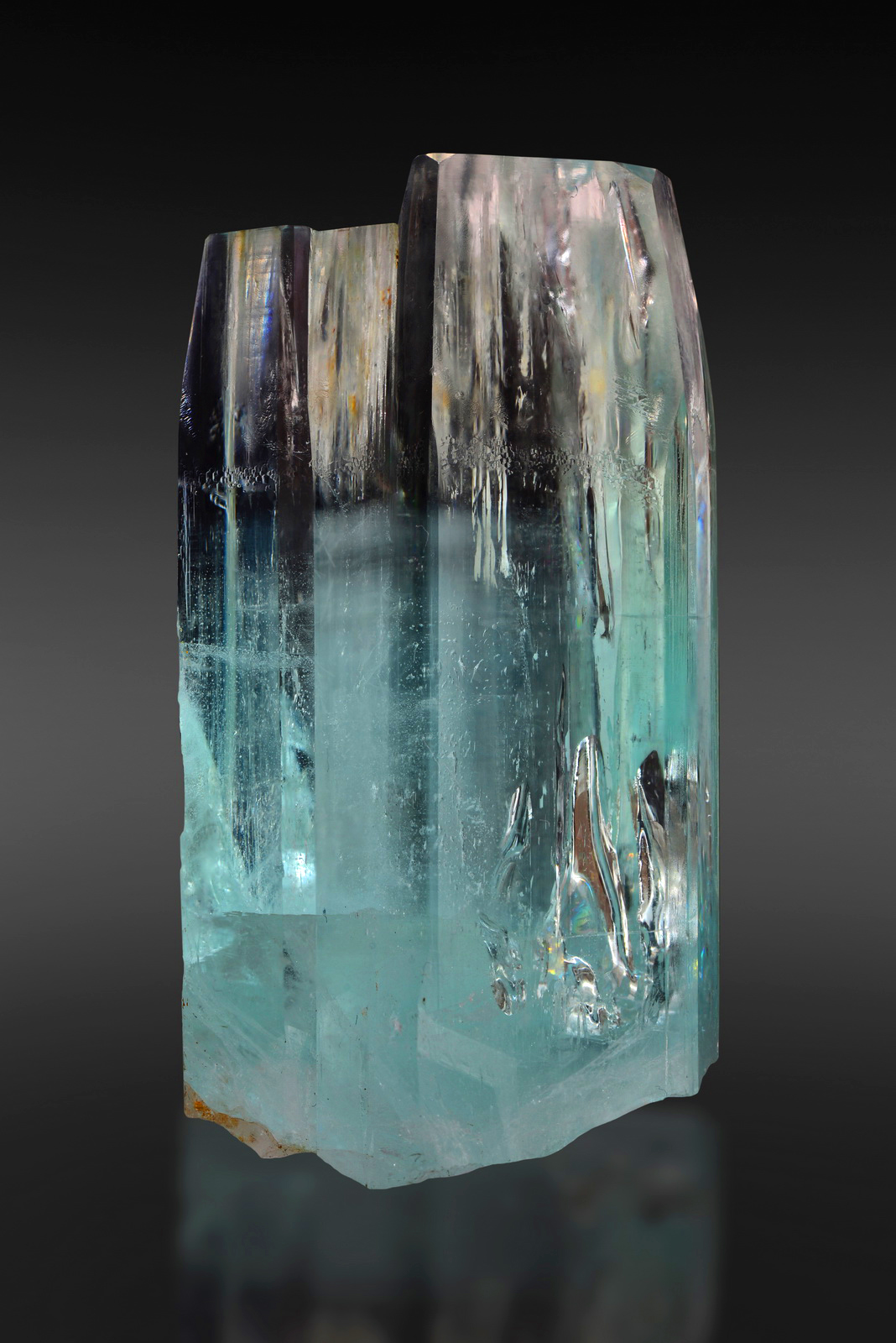Aquamarine double crystal featuring wonderfully rounded growth towards the termination. I have seen no other crystal showing this special form in such excellent way! No damage.