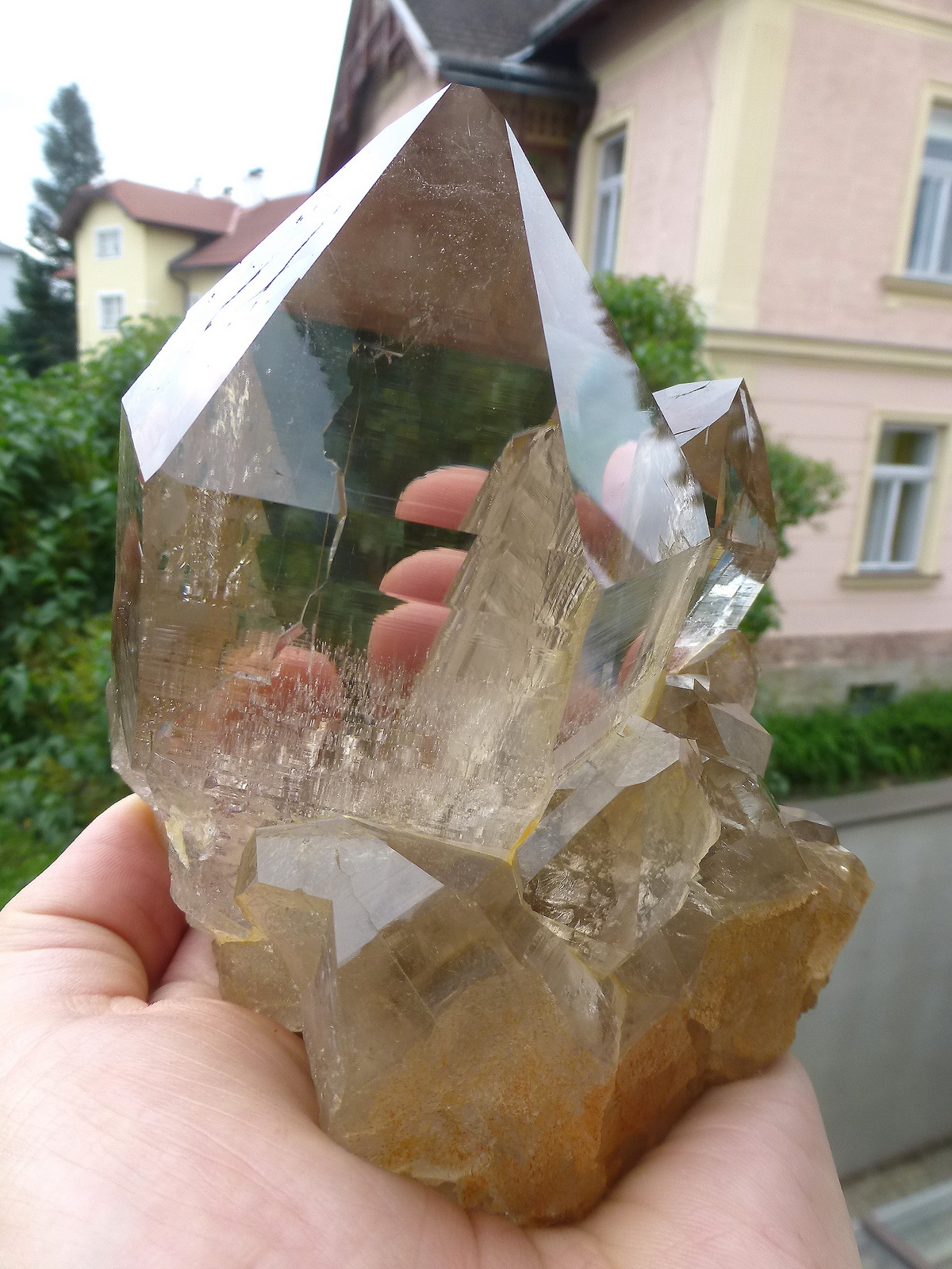 Fantastic clear quartz from Valais! Clear like glass, see my fingertips in the back on the right picture, that says it all! Striking quality indeed!