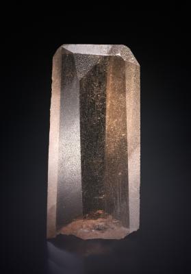 Pristine and clear quartz crystal featuring great clarity and a very deep smoky hue.