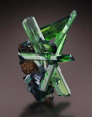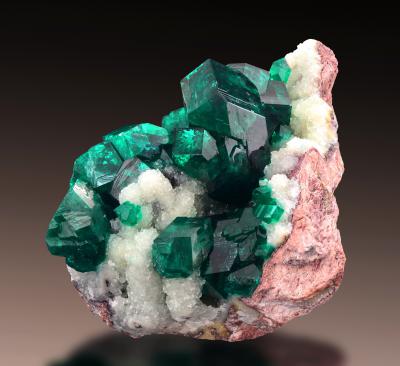 WOW! Striking dioptase crystals on white smithsonite matrix! Killer quality that still sets the standard of the species.