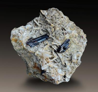 Amazing combination of clear quartz and 6-sided calcite blades on matrix. Found by the Hofer brothers Hannes and Gerhard, ex Gerd Stefanik collection.