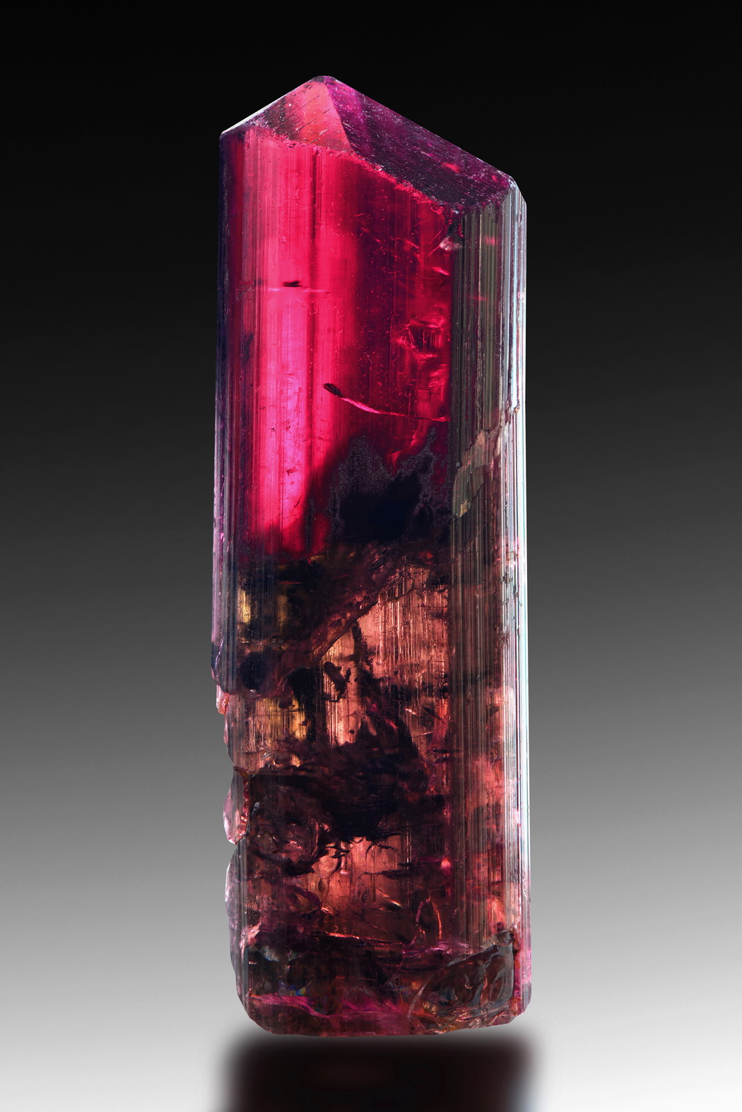 WOW! Gorgeous bi-colour rubellite from Sahatana valley! Pristine all around. The termination is a perfect 6-sided pyramid with a pointed tip, no pinacoid face! The top section is perfect gem rough, it is 100% clear and free of inclusions!