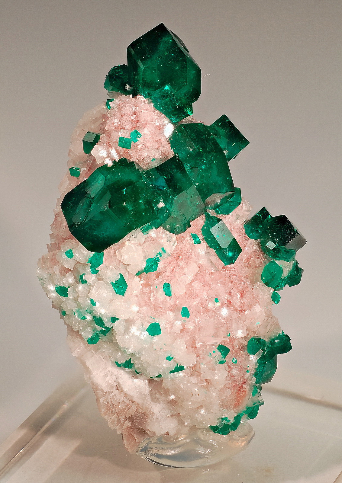 Incredibly aesthetic miniature of dioptase crystals on starkly contrasting white calcite crystals! No damage.