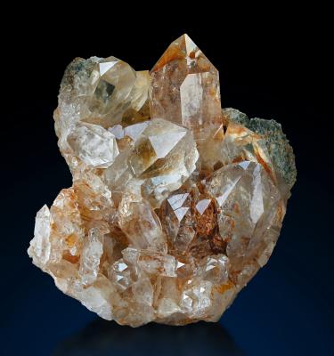 Wonderful clear quartz crystals on matrix. Typical superior quality from the famous Val Cavrein collecting site. Iron oxide inclusions set a lovely colour contrast. Great condition and visual impact!