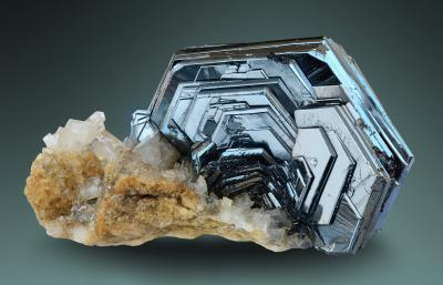 Excellent titanite twins on adularia and chlorite matrix. The colour of this small find in Kapruner valley is exceptionally deep and fine! Both crystals are in pristine condition, the larger one measures 19 mm. Ex Gerd Stefanik collection.