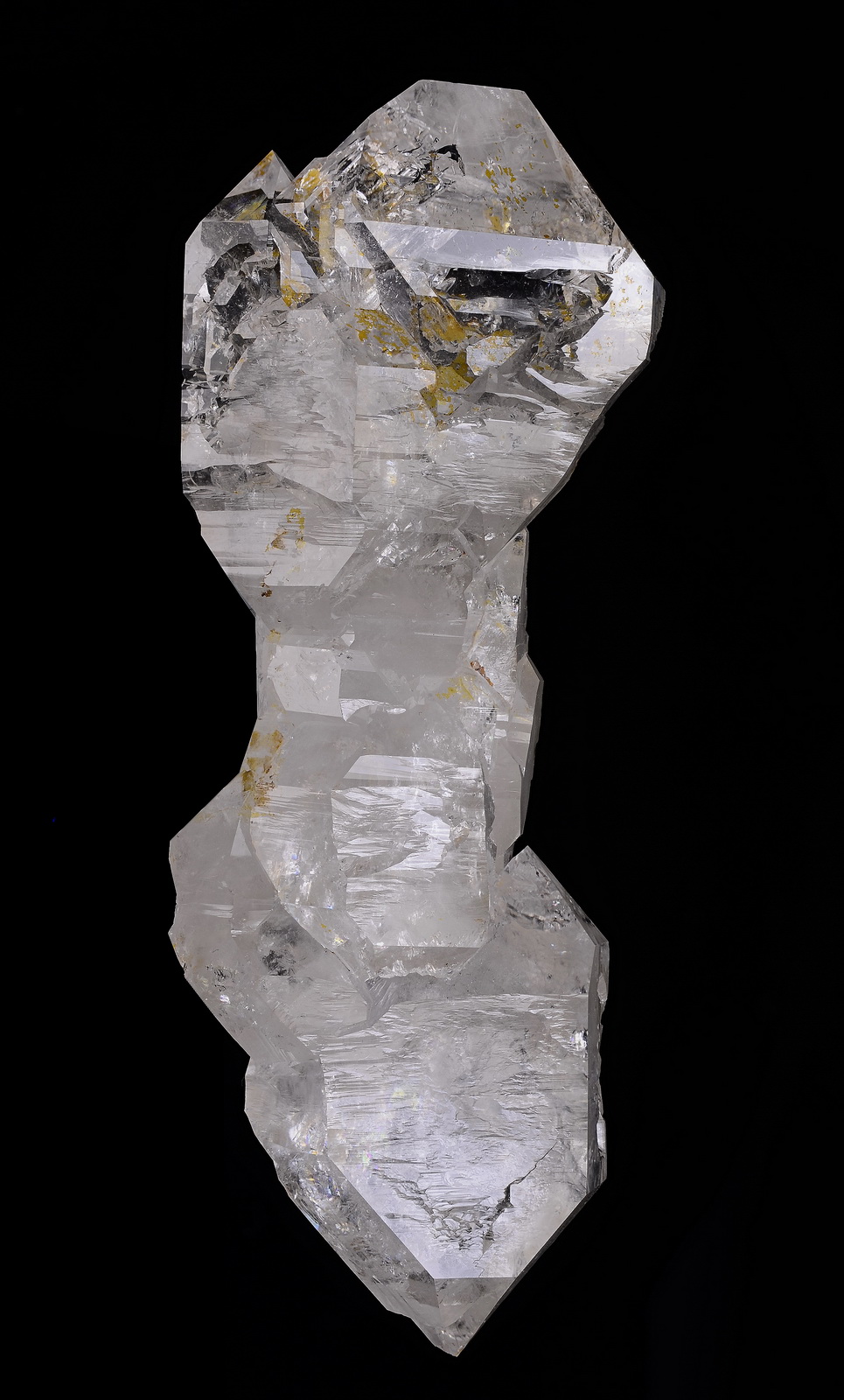 A really large, water-clear gwindel in light smoky color. The specimen shows a significant rotation, the termination is very sharp and the faces are very glossy. Only the tips show just a powder of chlorite, which helps to give more contrast to the piece. Hard to photograph, better in person! The dimension is remarkable and the quality is very good also backside. No damages, no contacts!