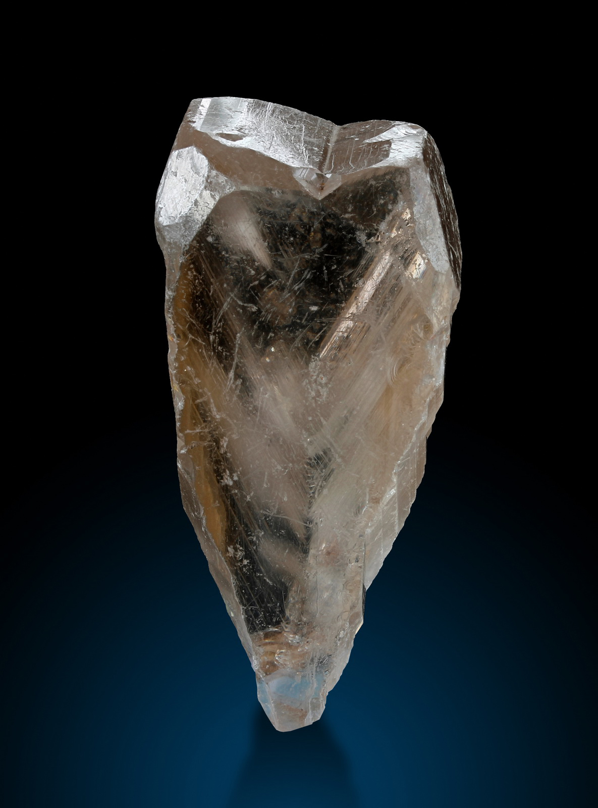 A sharp terminated, glossy and well developed gwindel. It is water-clear and looks great on front and back sides. The specimen is rich of amazing details, nearly impossible to capture all of them with the camera. Nearly perfect condition, only 2 tiny little chips. Nothing significant though, just 1-2 mm wide.