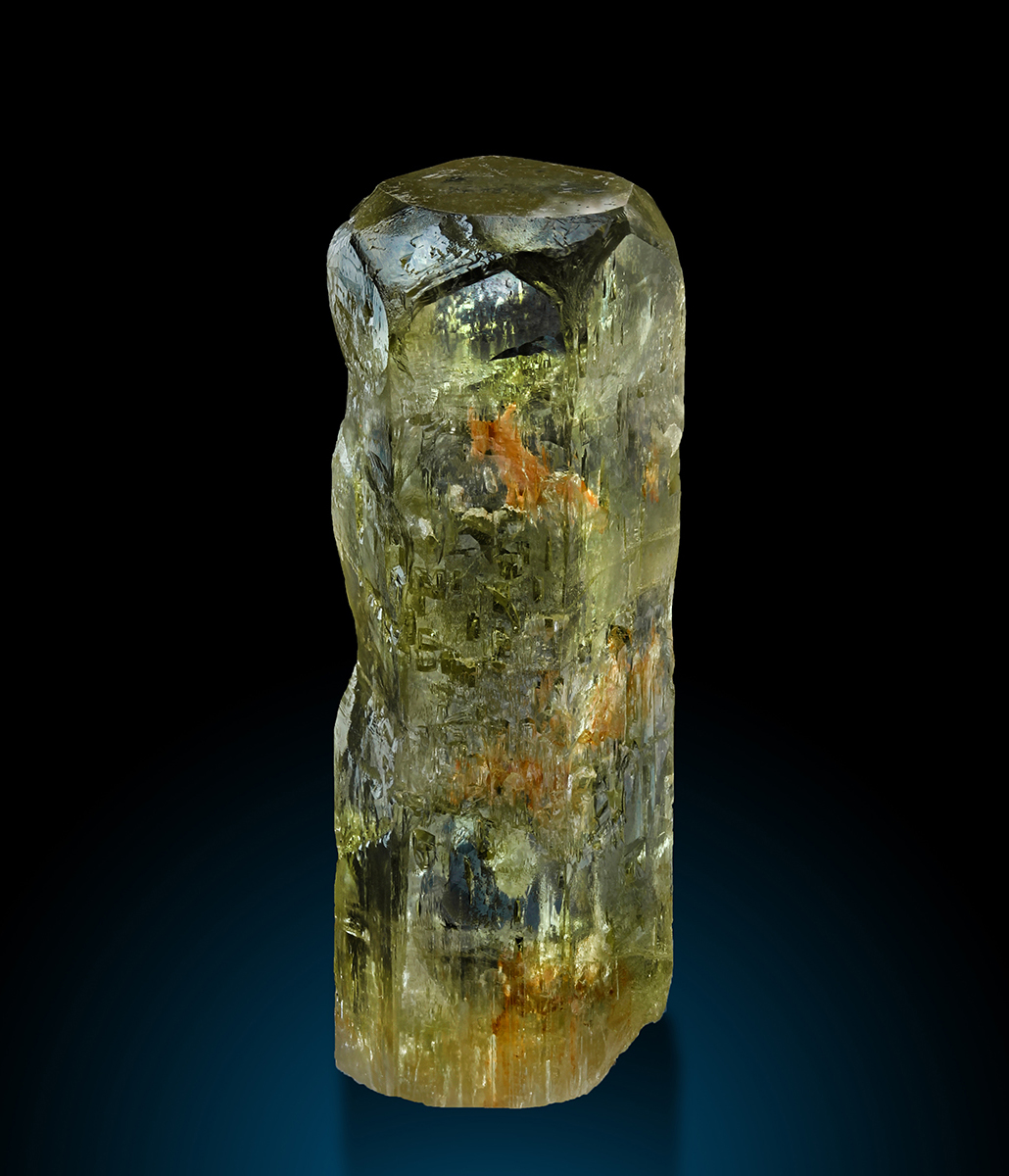 One really amazing heliodor from recent discoveries in India. This material is very rare and only a low number of crystals shows this amazing quality. The crystal is gemmy and the etched texture on all faces is simply breath-taking. It looks nice on the photos, but I have to note that it is even much better in person. The specimen looks simply great in each angle and is rich of wonderful details all around. No significant damages to report.