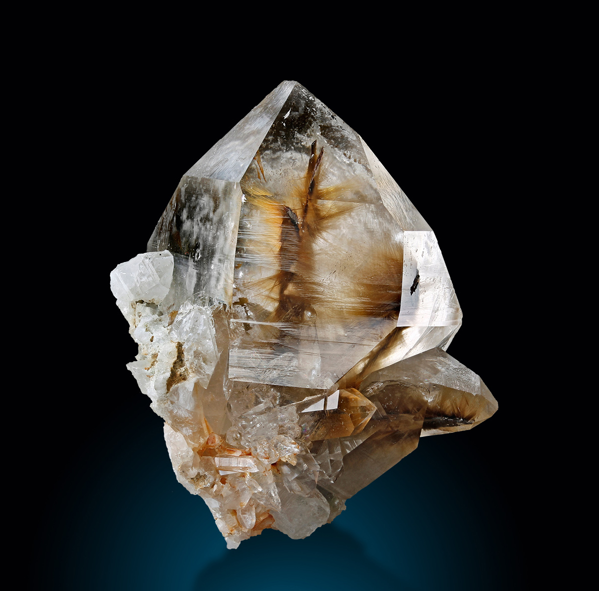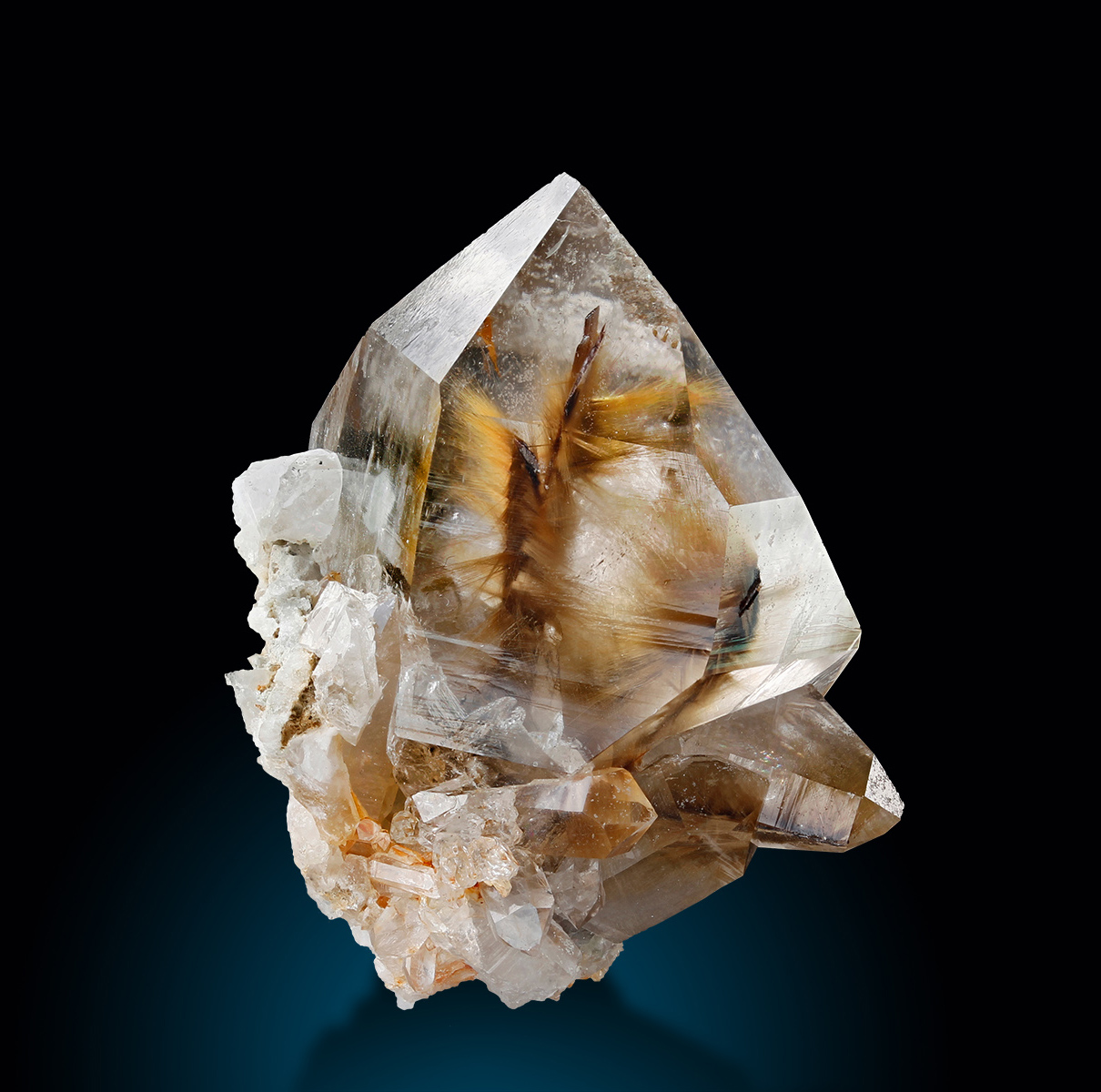 The rock crystal is razor sharp terminated and shows excellent luster. It is water-clear and in it´s center you can see these amazing incluions of brookite and intense red-brown rutile. Photography doesn´t make justice to this wonderful aesthetic specimen! No significant damages to report.