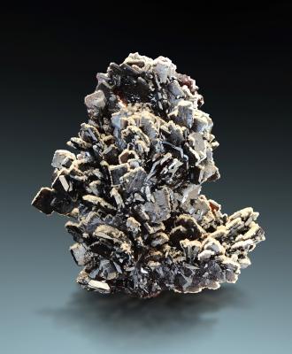 A spray of well-terminated stibnites set on a pillow of lovely white calcites. Beautiful shape and contrast, very typical Romanian style. Ex Leo Thalhammer collection, his label is coming with the piece.