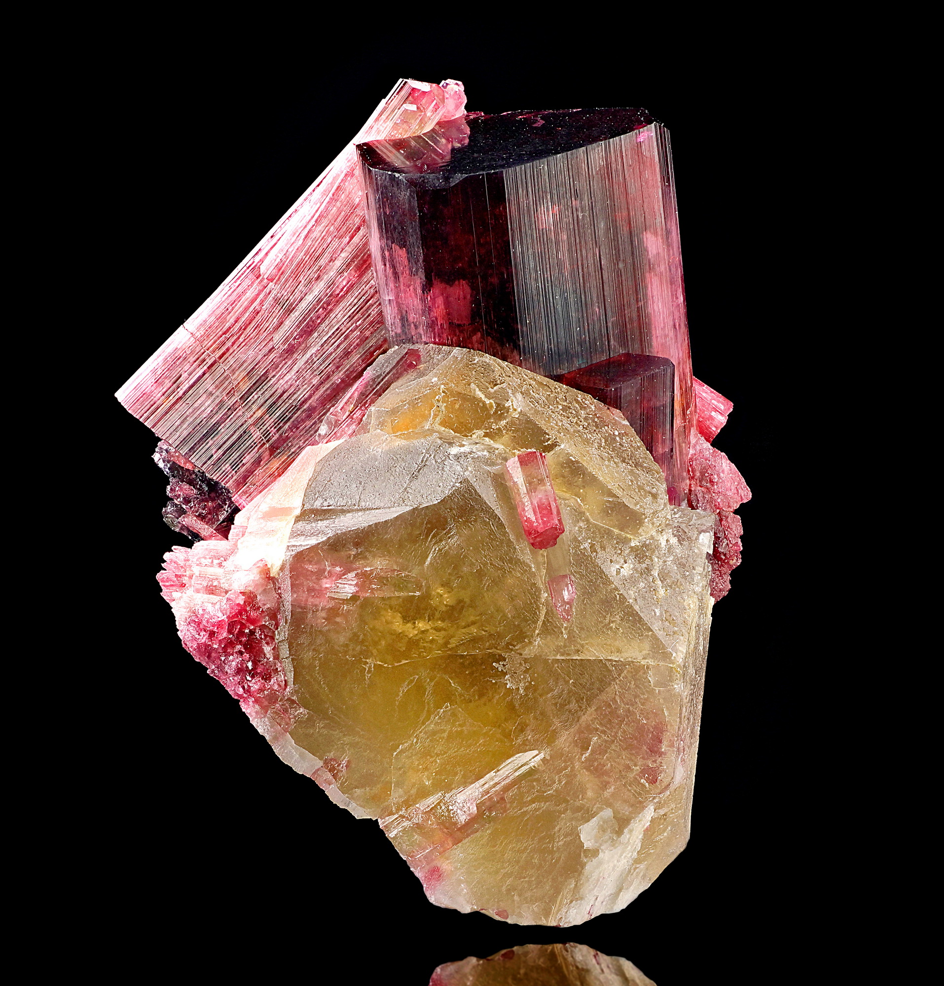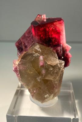 Gemmy rubellites sitting on quartz crystals. Sharp and perfect edges, no chips, no restoration. It just glows deep red when backlit!