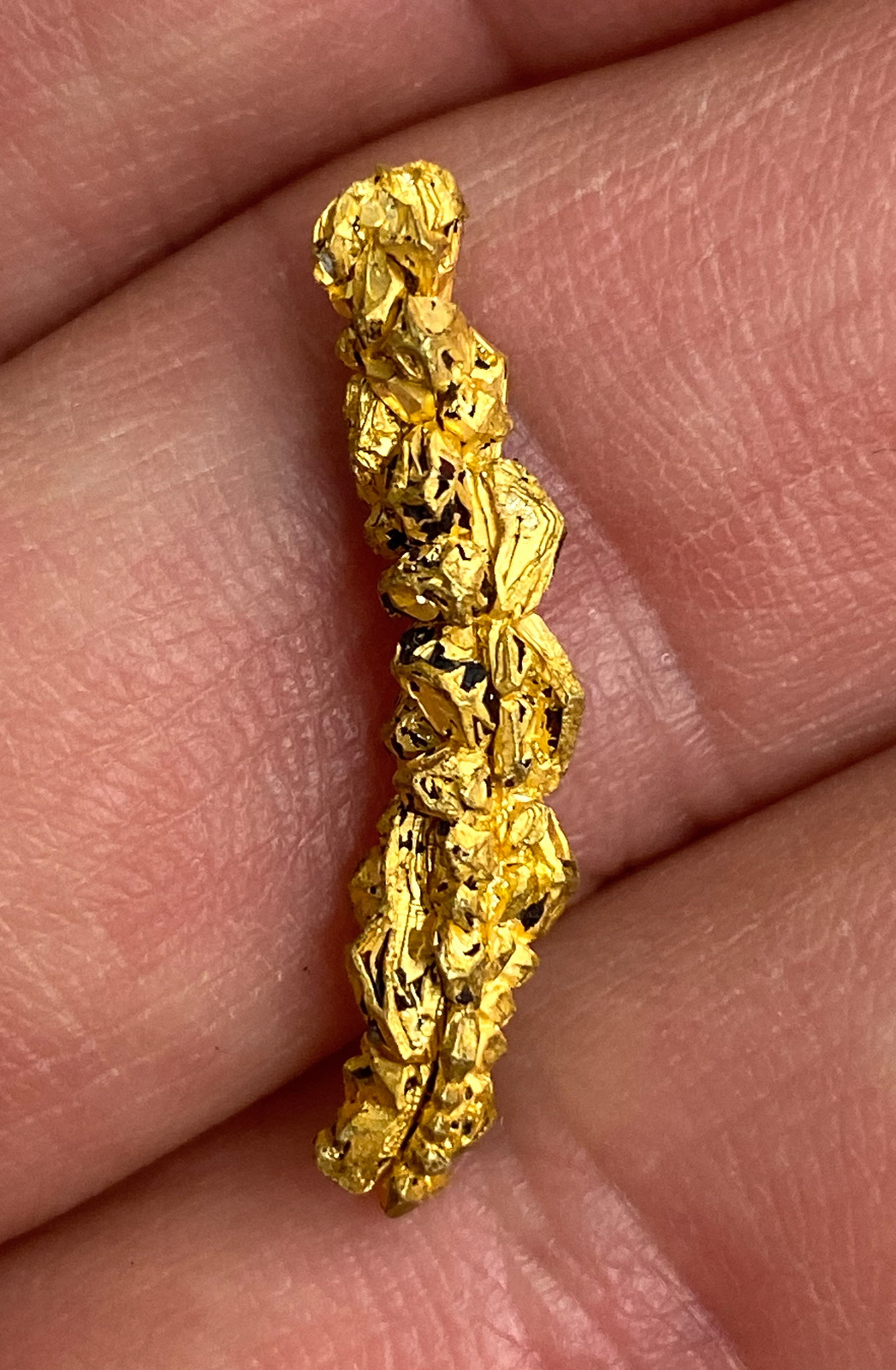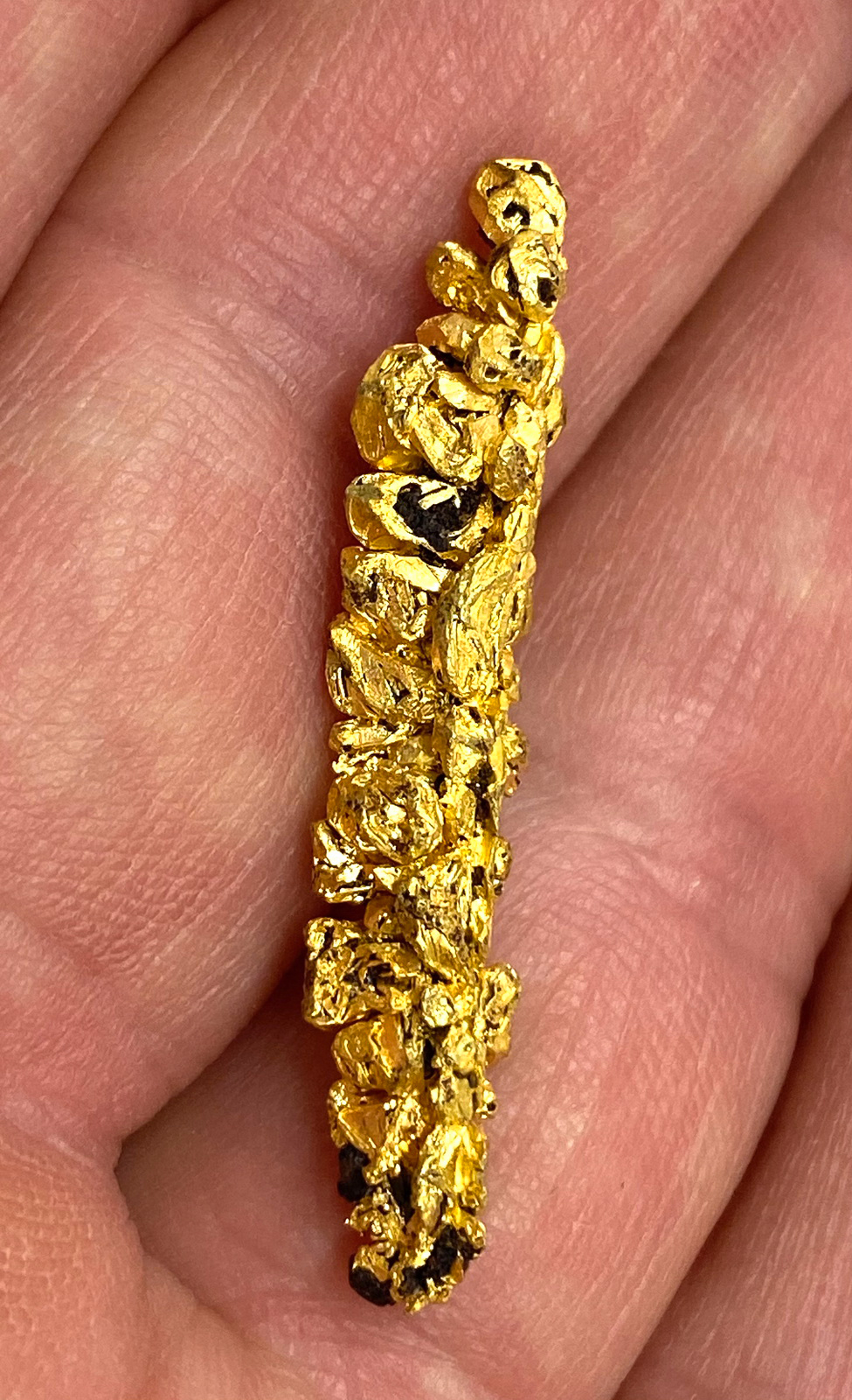 Elongated grystal cluster of exceptional gold crystals!