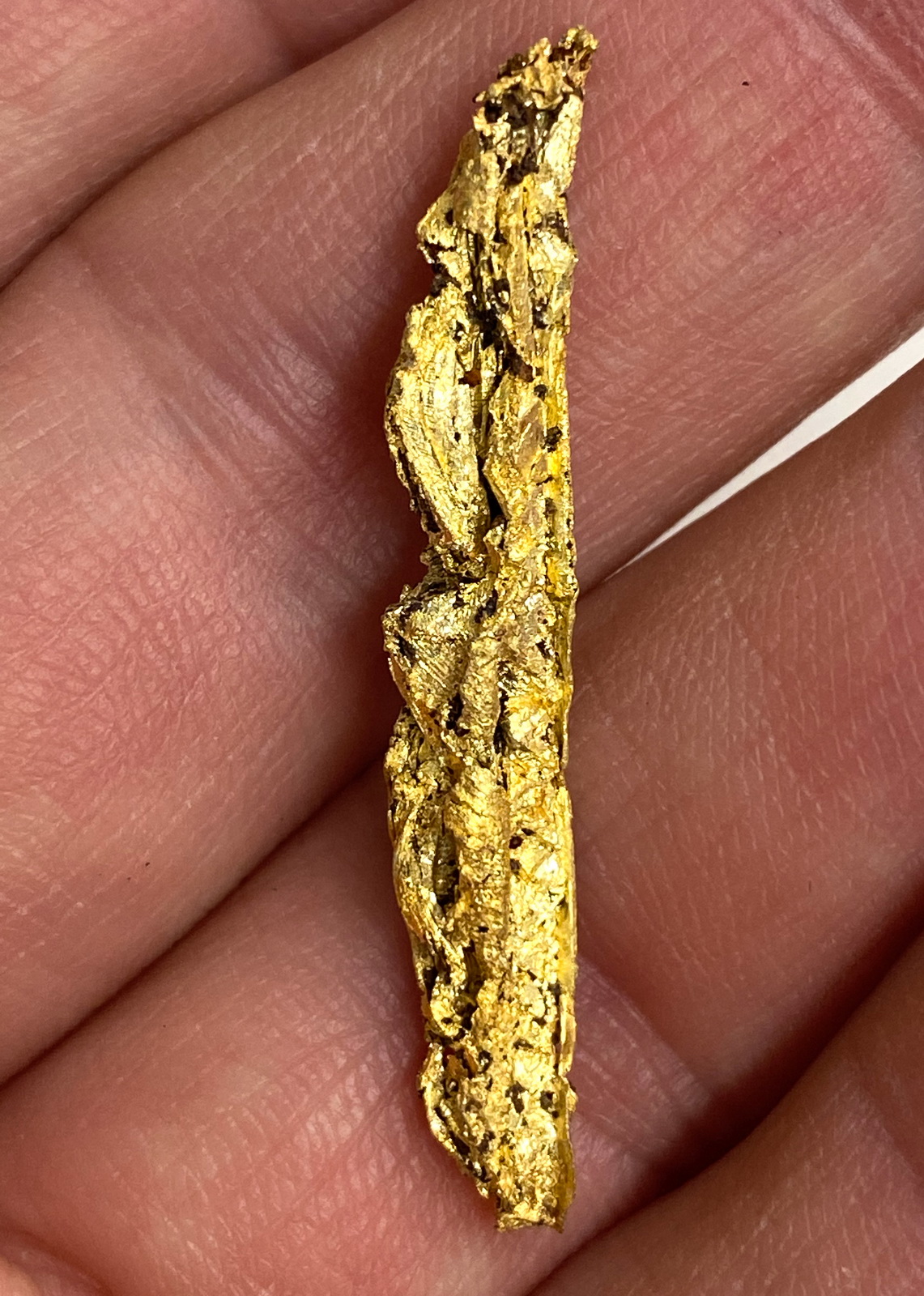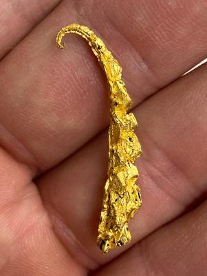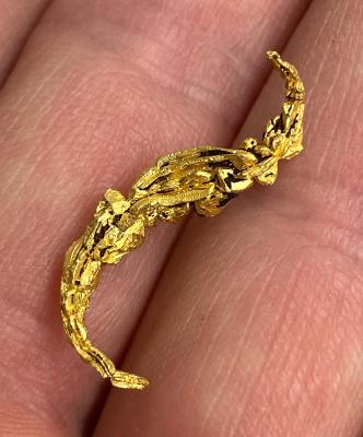 Due to their beauty and size the newly mined pieces represent by far the best gold specimens ever found in Morocco. Shapes include straight, elongated aggregates of spinel twinned gold crystals up to a few inches in length, as well as a big variety of wonderfully curved gold wire shapes. What makes this find truly special and outstanding is the fact that most specimens represent a stunning mix of both spinel twins and wire shapes, a new style of gold that we have not seen from any other locality before.