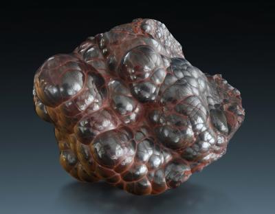 This is a large and very 3-dimensional aggregate of kidney ore from a classic English locality. The botryoidal crystal cluster in the center is truly very well exposed, much better than the picture shows it, and serves aa a wonderful focal point. No damages on the entire center region of the piece. The luster is exceptionally glossy, and the colour is a lovely reddish brown. Total weight: 4.3 kg. Ex Oliver Konczer collection #558.