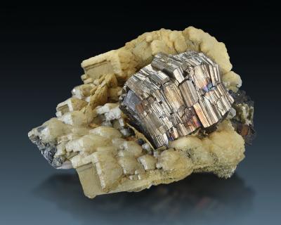A classic, honey coloured, twinned calcite crystal perched on top of a dolomite matrix. This specimen comes from the "Mineralien Museum der Humboldt Universität Berlin", two old labels are coming with the piece. The matrix is in fact much larger than shown on the picture, it is easily the size of the calcite crystal, possibly even a bit larger. No damage. A classic and very aesthetic specimen! Ex Oliver Konczer collection #417.