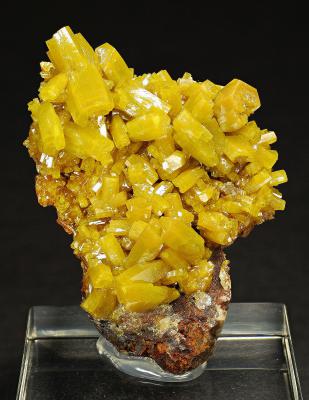 Amazing group of deeply coloured pyromorphite crystals perched on matrix. Great visual impact and aestetics! No damage.
