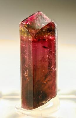 Very nice single multicolour liddicoatite crystal featuring red, olive-green and brown colours.