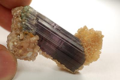 Purple and green tourmaline with lepidolite matrix. Beautiful colours and no damage.