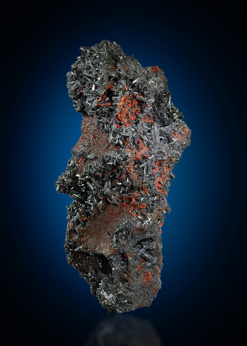 Bright and shiny crocoite crystals on gibbsite and gossan matrix. From the best section of the Lower Red River pocket. The colour and luster are in fact amazing!