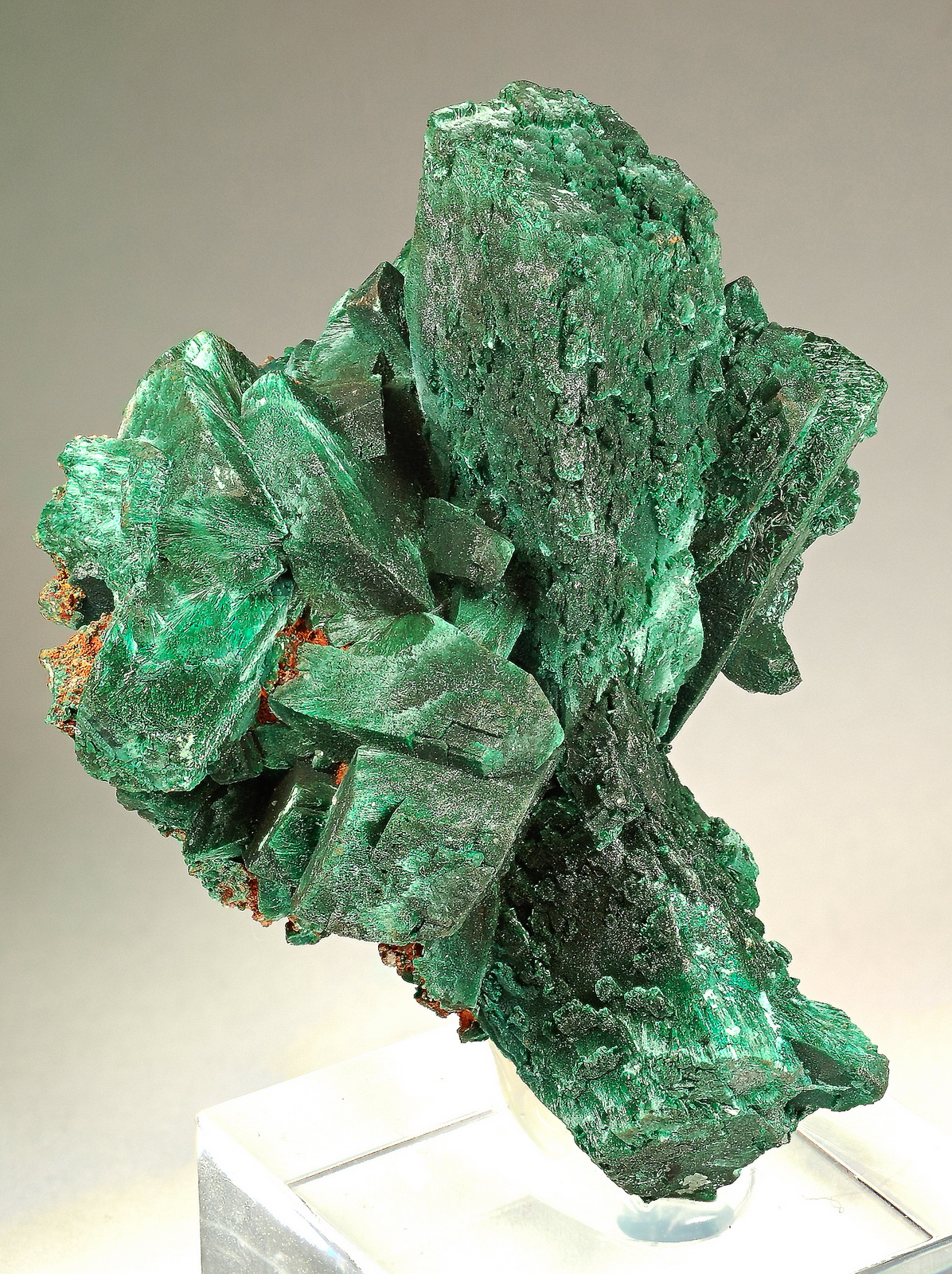 Fantastic group of malachite ps. azurite crystals! The crystals feature sharp edges and very beautiful radial growth patterns within the shape of the azurite crystals. Ex Anton Berger specimen.