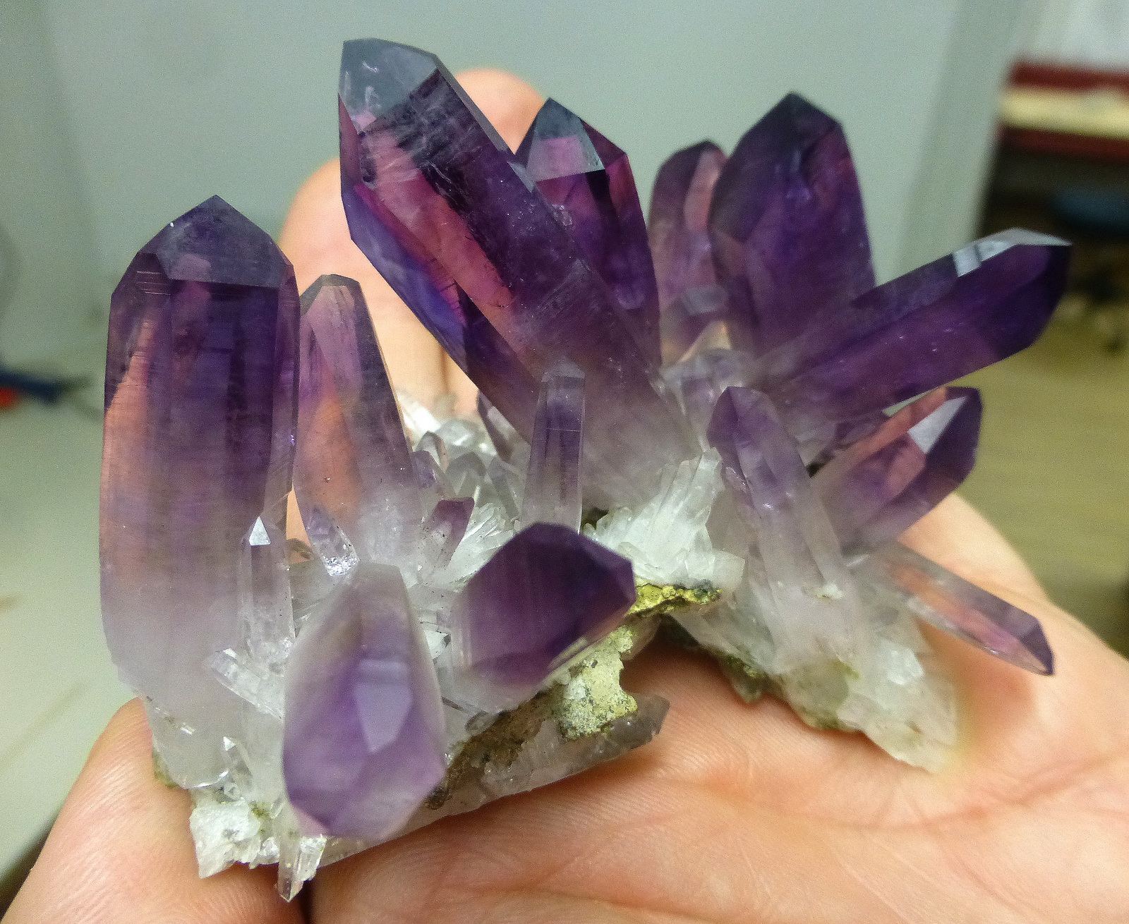 WOW! What a fantastic amethyst specimen from an old find at Las Vigas! The colour is truly deep purple, as intense as the very best I have seen from the locality! All crystal tips are in perfect condition, there are even no small chips. In addition, the specimen is a floater and well crystalized on all sides. Just jaw-dropping!