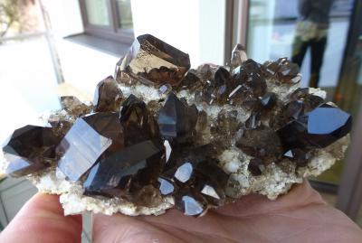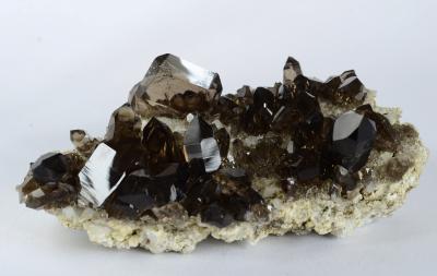 WOW! What an amazing closed gwindel on matrix! A 3 cm closed and fully pristine gwindel sits in the centre of a 5 inch wide matrix that is richly covered by many sparkling smoky quartz crystals. The quality is indeed striking! One of the best closed gwindels i have seen from the famous Rufibach pocket. No damage.