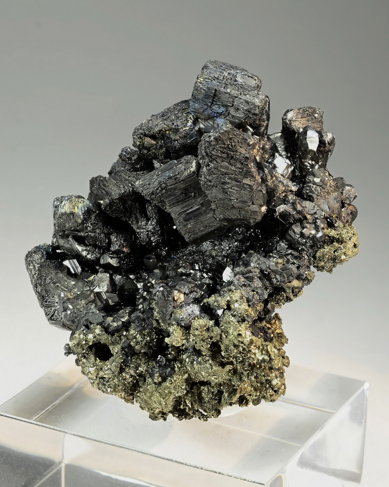 Amazing stephanite crystals on pyrite, a combination i have never seen before from Freiberg. The piece is a full floater cluster and very well crystallized on all sides. There is an old label from the famous collection of Friedrich August Frenzel (1842-1902) coming with the piece, dated to 14.4.1901