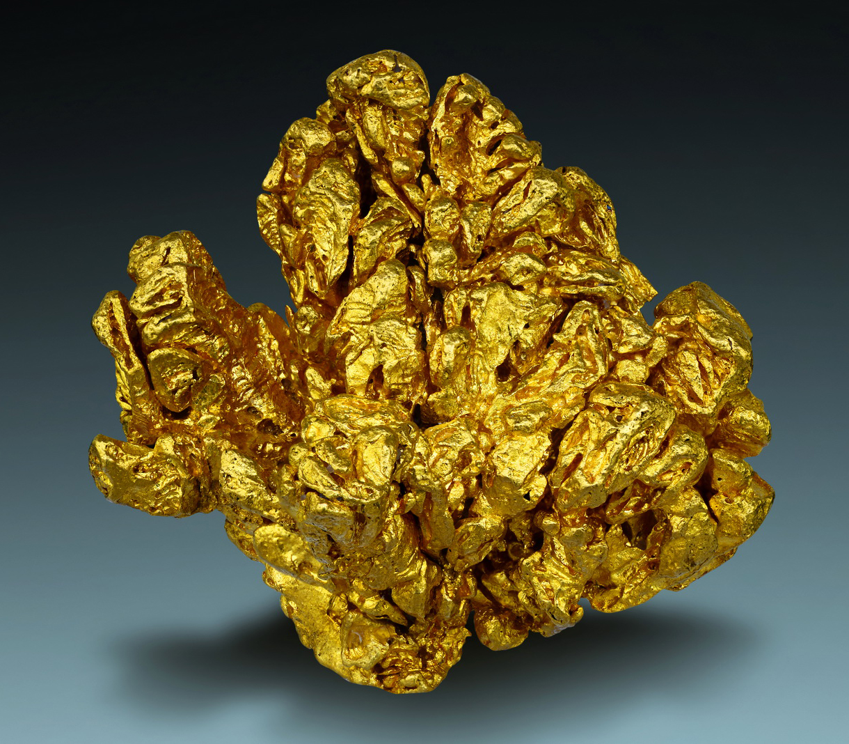 WOW! More than 8.5 ounces of pure crystalized gold! What a gorgeous cluster of superb bright crystals! Several dozen individual gold crystals forming a big and massive aggregate! The lustre of the crystals is very bright, and the overall impact is in fact amazing. This piece weighs is incredibly good - it has to be seen to be believed!