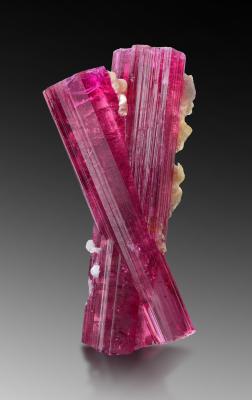Superb rubellite from a classic Brazilian source. Striking X-shape, great colour and luster all around!